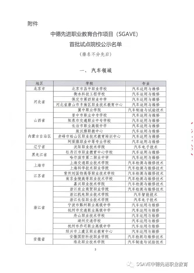 中德先进职业教育合作项目(简称SGAVE项目)是教育部与德国等欧洲职业教育模式先进国家行业龙头企业联合实施的职业教育合作项目。